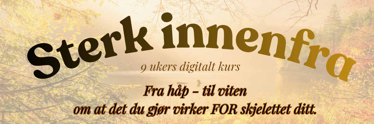 Et 9-ukers digitalt kurs for kvinner med osteopeni eller osteoporose som Ăžnsker tryggere belastning og en dypere forstĂ„else av skjelettet. Kurset gir kunnskap om hvordan belastning, nĂŠring og restitusjon pĂ„virker beinvevet – og hvordan riktig stimuli kan styrke skjelettet videre, sĂŠrlig etter overgangsalderen.
